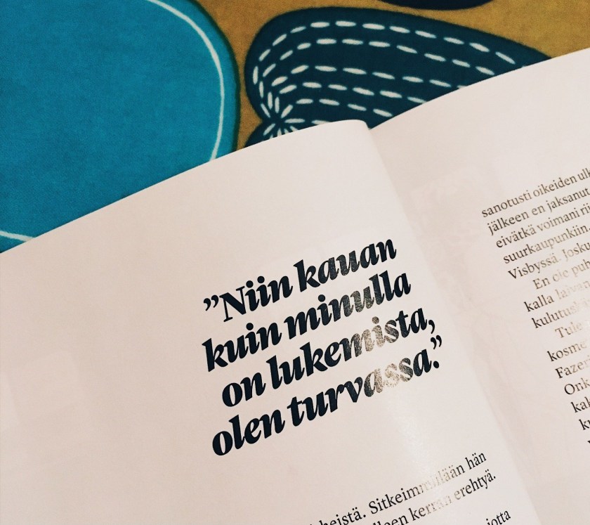 Niin, en osaa sanoa enää muuta kuin että toivoisin että tekin kävisitte lukemassa nämä tekstit, raskaasta aiheesta huolimatta ja juuri siksi. Ja lukekaa myös tämä Imagessa ilmestynyt essee, Huone yhdelle. Sekin on aivan mielettömän hieno: siinä kiteytyy täydellisesti yksinolemisen ja yksinmatkustamisen joskus niin kovin vaikeasti ulkopuolisille selitettävä haikea onni.