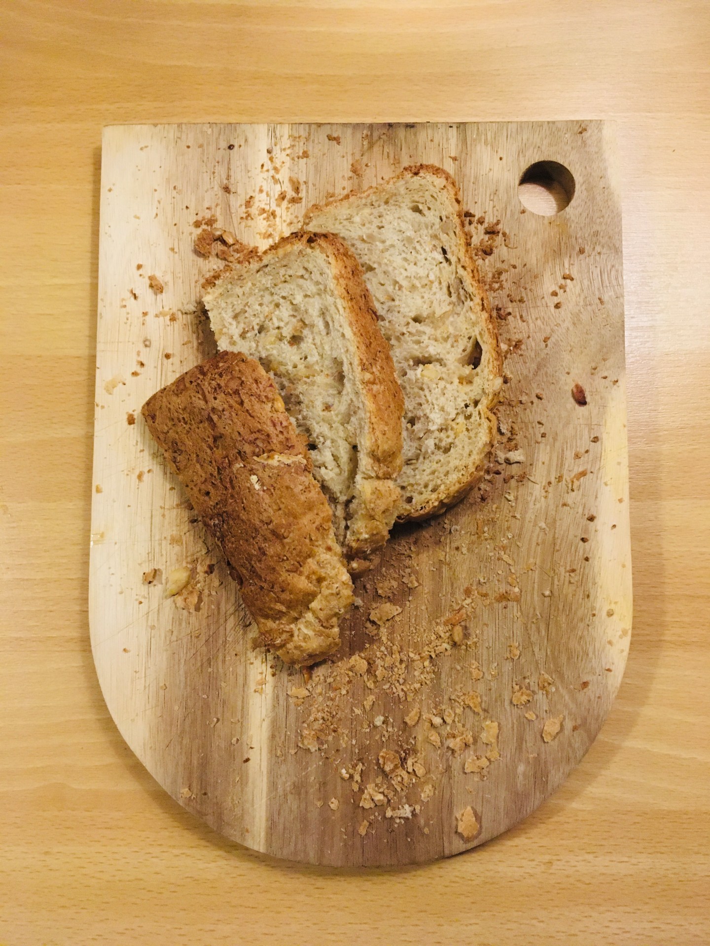 Vielä pari sanaa leivästä: ennen joulua keittiööni löysi tiensä vähänkäytetty leipäkone. Emme olleet tavanneet aikaisemmin, mutta nyt meistä tuli sydänystäviä, sillä vihaan taikinoiden vaivaamista käsin sydämeni pohjasta. Vaan kas, enää ei tarvitse! Kaikki leipäainekset mitataan kerroksittain vuokaan, kansi kiinni ja napista naks. Kolmen tunnin päästä pirtissä tuoksuu tuore, rapeakuorinen leipä. Kokeilin myös pitsataikinan tekemistä koneella, sekin onnistui hyvin eikä tarvinnut tapella sormiin takertuvan taikinan kanssa.