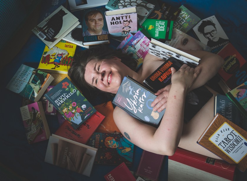 Lapsena en tiennyt mitään parempaa, kuin olla yksin ja lukea. Raahasin kirjastosta valtavia kirjapinoja ja ahmin ne muutamassa päivässä. Paras paikka maailmassa oli mummolan vaatehuone, johon sulkeuduin tuntikausiksi omaan maailmaani lukemaan vanhoja Seura-lehtiä. Edelleen lukeminen on minulle yksi rakkaimmista asioista. Saan kirjoista valtavasti turvaa: lukeminen lohduttaa ja pitää minut kasassa silloin kun maailma ympärillä natisee liitoksissaan.